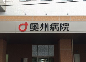 スチール板の面に対して、サインの裏面にボンドテープを仕込み、H鋼まで穴を貫通させ根元にコンクリートボンドをつけたスタッドを差し込み、中からボルト閉めにて取付。