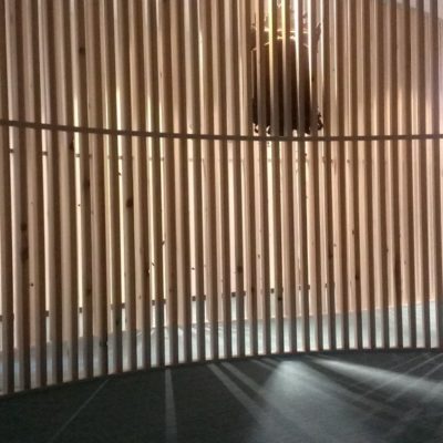 木格子 ディスプレイ イミューン仙台は、免疫力の回復・増進に主眼をおいた美容と健康のスタジオです。 天井まで真直伸びる木格子は、約5...