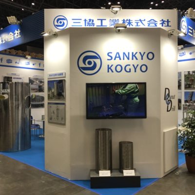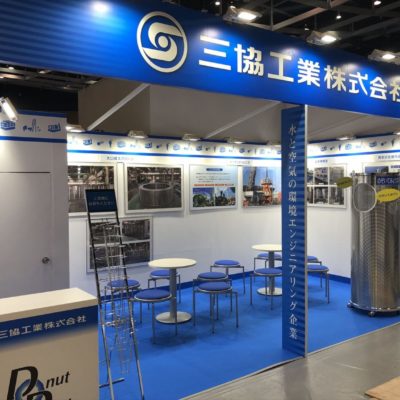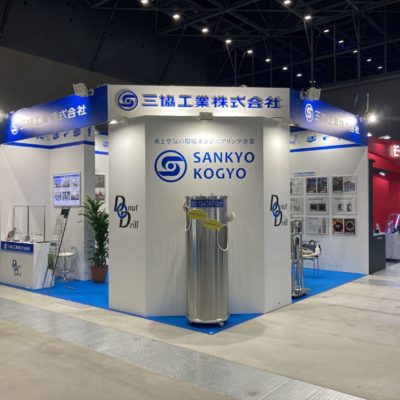 水道産業界の最新技術情報を事業体の方々にご紹介する水道用資機材の展示会、東京水道展に出展されている三協工業株式会社様のブースのデザイ